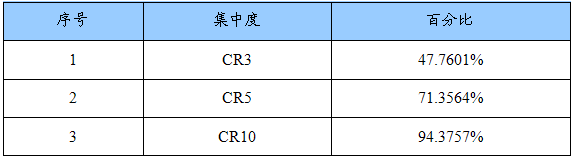 前三省市产出几乎占据了中国市场的一般份额,而前十省市占据94%以上的市场份额,产出集中度高。