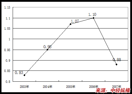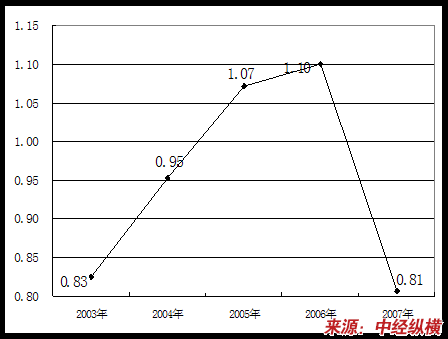 2003-2007年中国船舶及浮动装置制造 行业 总资产周转率