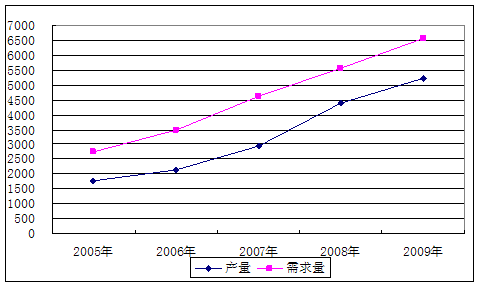 2005-2009年我国电磁不锈钢供需平衡对比图