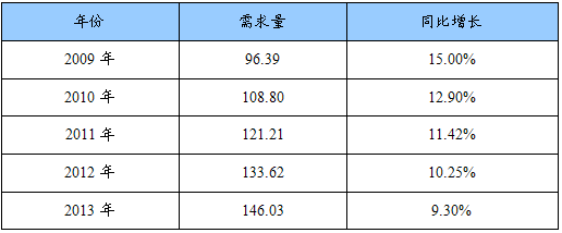 2009-2013年市场规模需求规模预测