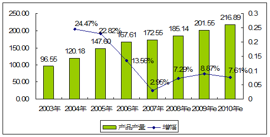 2003—2010年电铅粗铅产品产量 分析 及预测图