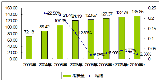 2003—2010年电铅粗铅产品消费量 分析 及预测图