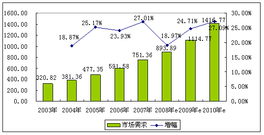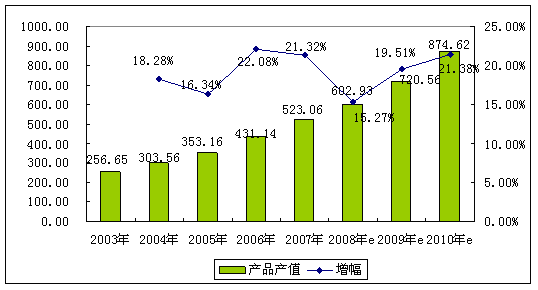 2003—2010年墙体保温材料产品产值 分析 及预测图