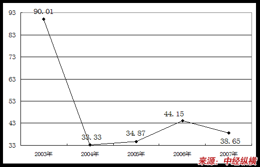第二节 2003-2007年中国非金属船舶制造 行业 资产负债率最好水平