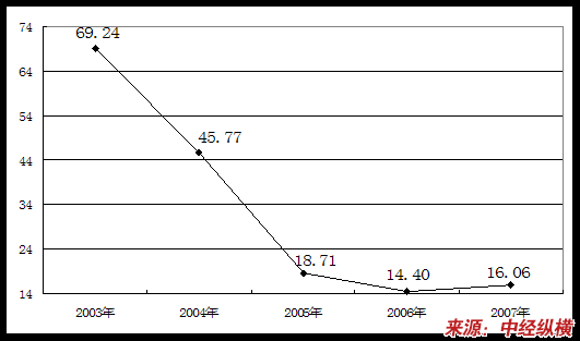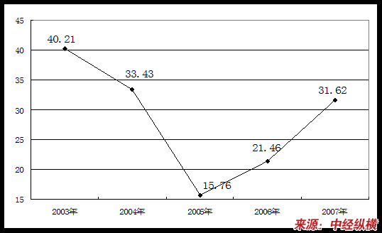 第四节 2003-2007年中国非金属船舶制造 行业 资金利润率最好水平