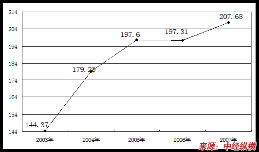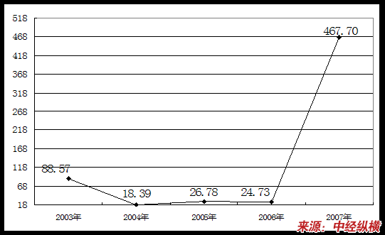 2003-2007年中国非金属船舶制造 行业 资本保值增值率最好水平
