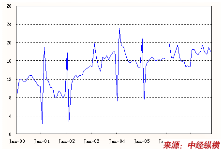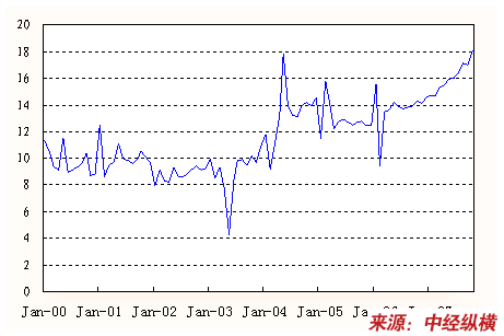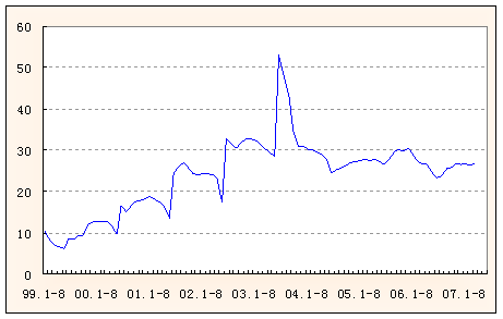 1999年8月-2007年10月社会消费品零售总额月度同比增长率