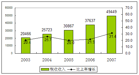 全年税收收入49449亿元(不包括关税、耕地占用税和契税),比上年增加11813亿元,增长31.4%。