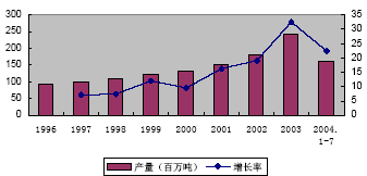 历年产量、增长率示意图
