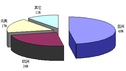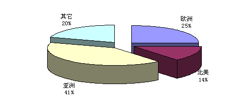 据经合组织(OECD)钢铁委员会预测,2005年以中国为首的亚洲将消费全球54%的钢材产量。亚洲粗钢产量将占全球总产量的49%,且还占31%的全球钢材出口量,46%的钢材进口量。