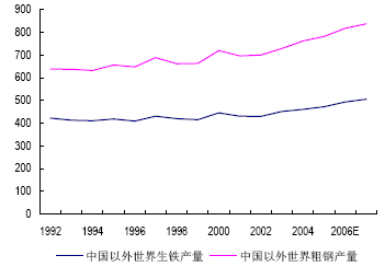 2004年中国钢铁产量增长22.5%至2.70亿吨。OECD估计,今明两年全球钢铁产量预计将继续增长,到2006年中国钢铁产量估计将达到3.40亿吨,占据全球总产量的30%。全球钢铁产量在2004年首次突破了10亿吨。中国和亚洲其他地区产能增加,预计将减少2005年钢铁贸易量。2004年钢铁贸易量创下2.63亿吨的新纪录。