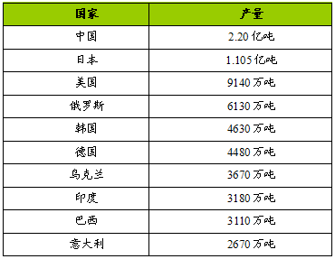 (一)分国家看,年产钢量超过2000万吨的国家10个