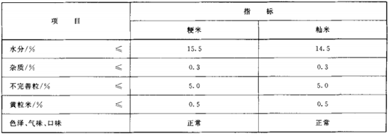 水分、杂质、不完善粒、黄粒米及色泽、气味、口味应符合下表的规定,其他加工指标应符合GB1354的规定。