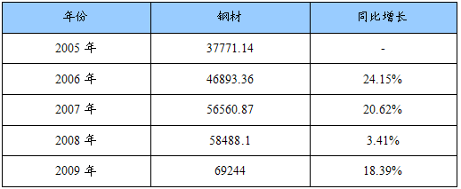 2005-2009年我国钢材产量