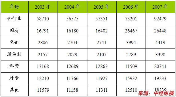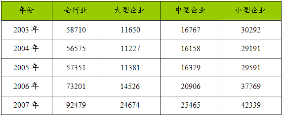 一、2003-2007年中国船舶修理及拆船 行业 企业从业人员 分析
