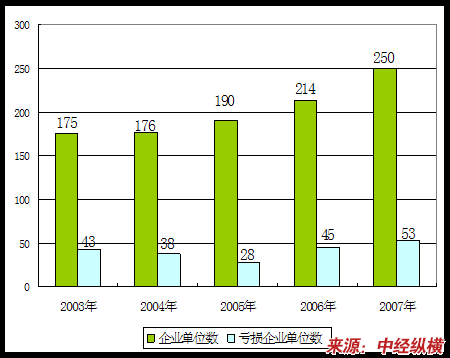 一、2003-2007年中国船舶修理及拆船 行业 企业及亏损企业数量