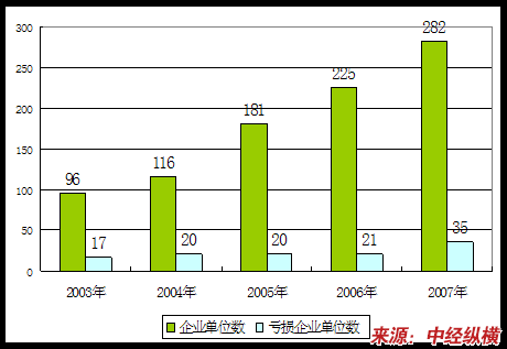 一、2003-2007年船用配套设备制造市场企业及亏损企业数量