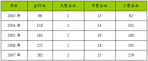 第三节 2003-2007年船用配套设备制造市场企业数量 分析
