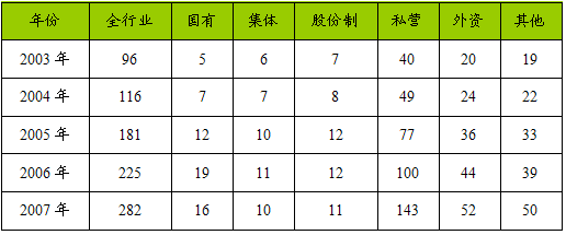 2003-2007年船用配套设备制造市场不同有制主要企业数量