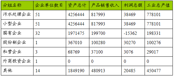 评价:目前我国污水处理企业仍以中小企业为主,虽然总体收益远远超过私营企业及其他类型企业,但是由单位绩效比来看,私营企业仍然是单位资本产出效益最大的经济实体。