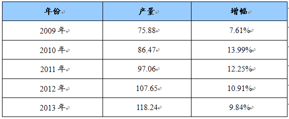 2008-2013年我国生物蛋白胶产品产量预测 单位:万套