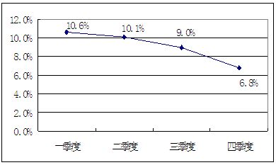 国际经济形势好于预期使出口增长17.5%,国内保持高增长使资源性产品的进口需求保持旺盛,进口增幅也达22.5%,对外贸易顺差达到2447亿美元左右,同比减少6%。初步预计经济增长率将保持9.5%以上的速度,居民消费价格水平保持在3%左右的可承受范围,理顺资源能源和公用事业价格成为影响居民消费价格的主要因素。城镇登记失业率保持4%左右。