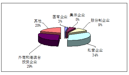 2006年涤纶纤维制造业产品销售份额集中度按不同经济类型