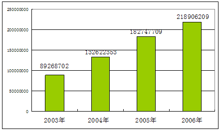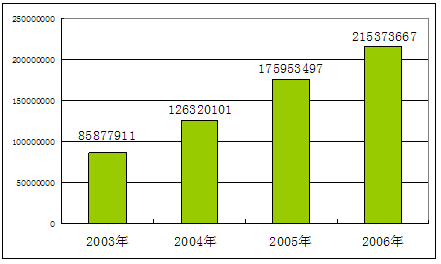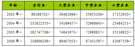 2003年-2006年涤纶纤维制造业不同规模企业总销售收入