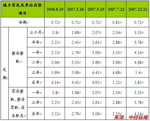 2007年中国人民银行6次上调人民币存贷款利率,一年期存款利率从2.79%上调到4.14%。2007年我国国民经济平稳快速发展,宏观调控进一步加强和改善;人民币汇率形成机制改革稳步实施,汇率弹性逐步增强;外汇储备继续快速增长,应对外部冲击的能力不断增强;财政收入、企业利润和居民收入大幅提高,财政、企业、居民的偿债能力不断增强;金融机构改革继续深化,公司治理进一步加强;金融 市场发展 迅速,运行总体平稳。