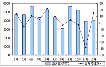 2009年1-8月份,国内微型计算机产量为1.05亿台,比上年同期增加了11%;其中笔记本电脑产量8809万台,比上年同期增加了近28%。笔记本电脑产量在微型计算机产量的占比稳定在83%左右,上网本销量和电脑下乡的效果未达到预期。