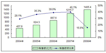 2008年,我国移动电话用户新增9392.4万户,用户总数为6.41亿户,每百人移动电话拥有量达到47.3部,比2007年增加6.2部。据IDC发布的报告,2008年全球手机出货量达11.8亿部,同比增长3.5%。我国境内生产手机占47.5%,与2007年基本持平。