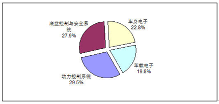 在国家《汽车产业调整和振兴 规划 》等政策的推动下,区域销售壁垒被打破,小排量汽车购置税降低……汽车消费市场环境不断改善。从2009年汽车生产销售情况来看,中国汽车消费第二次高峰已经提前启动,汽车总产量从2月份开始回暖,而6月份中级轿车同比的增长标志着中国私人汽车消费的全面复苏。2009年1-8月份,中国共生产汽车825.07万辆,同比增长26.55%,位居全球第一。下游市场的蓬勃发展,将推动汽车电子市场快速增长。