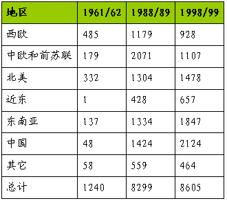 60年代,世界上一些发达国家如西欧、北美和日本等扩大了他们的氮肥生产能力。70年代和80年代早期,新建厂主要集中在天然气丰富的地区如前苏联、加勒比海、近东以及一些化肥消费大国如中国、印度、印尼和巴基斯坦等。80年代,2/3的尿素新增能力集中在东南亚地区,该地区的尿素生产能力由3300万吨N增长到5100万吨N,印度、中国和印尼占增量的绝大部分。