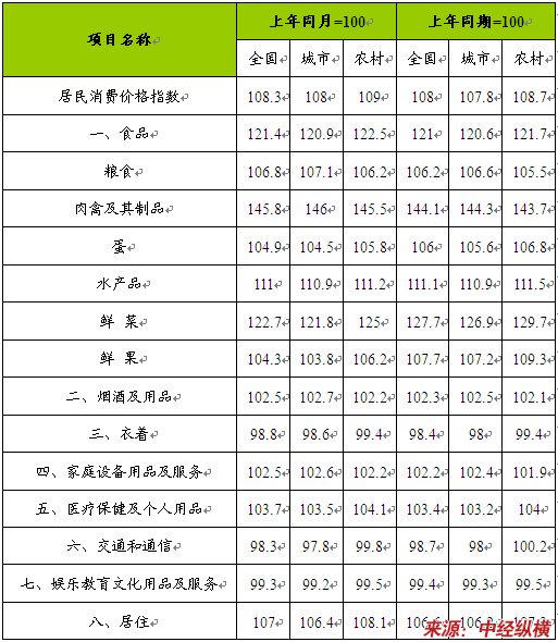 2008年8月居民消费价格分类指数 分析