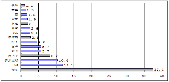 根据调查对象提供的信息,在目前家庭拥有的冰箱中,排名前五位的品牌均为国产品牌且已占据了超过三分之一的份额。表示将在未来半年内购买新冰箱的家庭所希望购买的品牌中,国产品牌也排名靠前。这说明国产品牌的冰箱在消费者心目中占有重要的地位,大有可为。尤其是海尔,在目前拥有和希望购买的品牌中都位居第一,的确是值得骄傲的民族品牌。这一方面体现了国产冰箱相对于外国品牌具有一定的价格优势,也说明国产冰箱的各方面质量指标已逐渐与国际标准同步,并得到了广大消费者的认可。