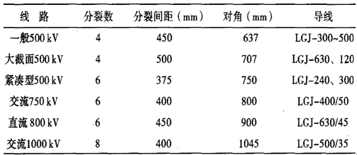 电力金具与国家输电线路建设有密切关系,不同的线路结构必需用不同的金具,高压、超高压、特高压输电线路每提高一个电压等级,就会有新的金具与之配套,500kV及以上输电线路分裂导线参数见下表: