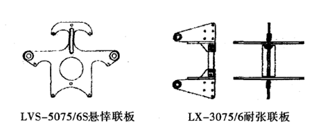 连接金具品种繁多,有球头挂环、碗头挂板、挂环、挂板、联板、拉杆等种类。随着导线强度、截面的增大和分裂数的增多,金具强度随之增加。球头挂环、碗头挂板已达到530kN,其中210kN球头挂环、碗头挂板的球窝配合有两种尺寸,一是符合IEC120标准规定,球头杆径20mm,与160kN吨位相同;二是85标准型球头杆径为24mm。连塔金具、挂环、连板极限荷载已增大到:1200kN。六分裂导线悬垂联板、耐张组合联板97年用于500kV华北紧凑型线路,悬垂联板用于V型绝缘子串,要求强度大于500kN,两上导线悬垂线夹偏转角大于67度。西zlL750kV输电线路耐张联板极限荷载达1200kN。交流特高压八分裂导线悬垂联板、耐张组合联板尺寸更大,强度更高,材料和工艺要求更严。