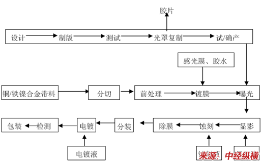 在生产工艺方面,国内导线架生产工艺为冲制型和刻蚀型两大类,以冲制型为主流工艺,其产量占导线架总量的95%以上的份额。刻蚀型生产主要用于高精度、多管脚、小节距、非标准产品,其数量仅占导线架总数的2%左右。