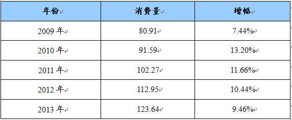 2009-2013年倍绣生物蛋白胶消费量预测 单位:万套