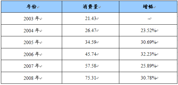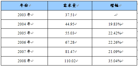 2003-2008年我国倍绣生物蛋白胶市场需求规模调查 单位:万套