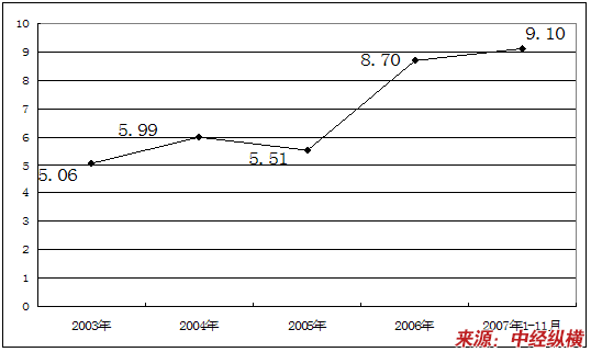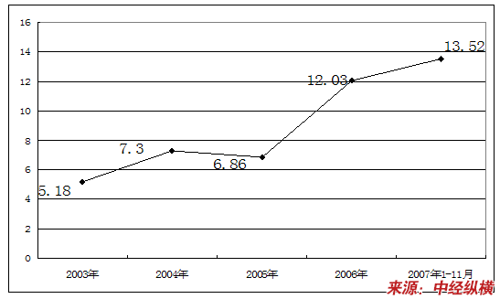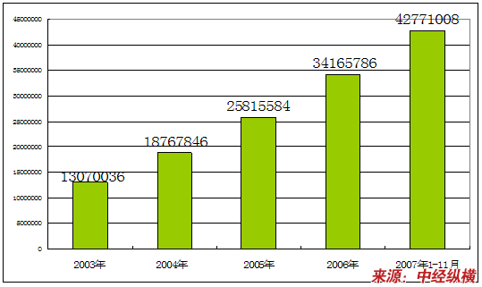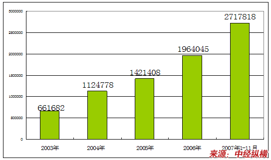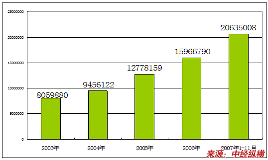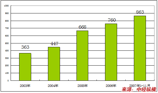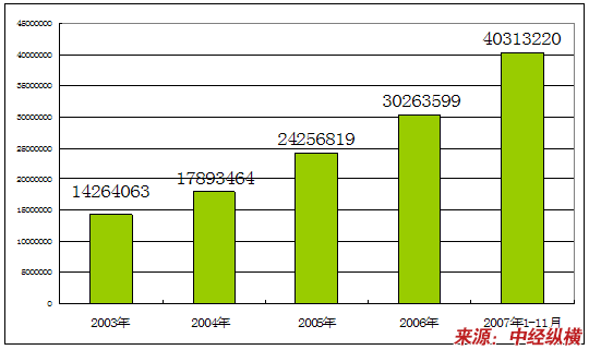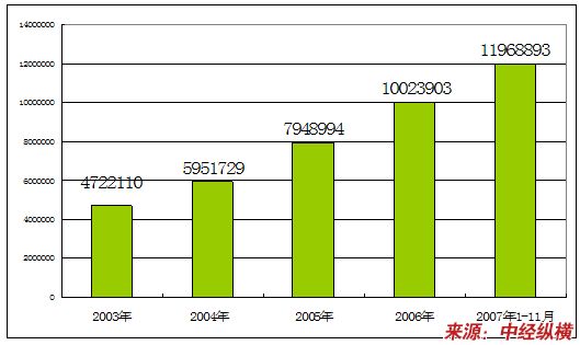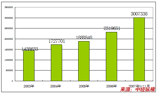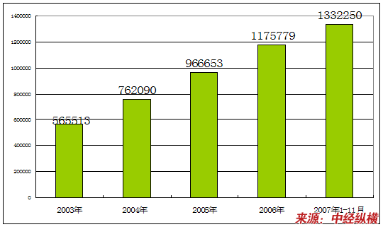 2003-2007年1至11月齿轮制造业总资产状况 单位:千元