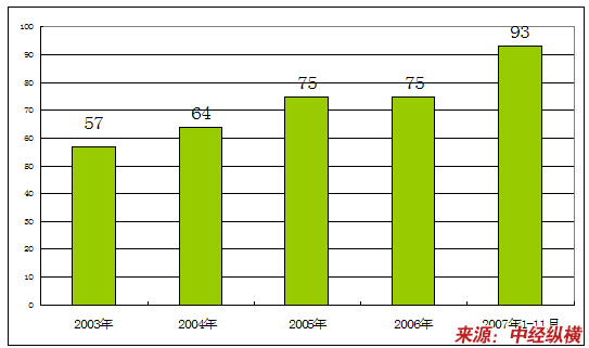 2003-2007年1至11月齿轮制造业企业数量状况 单位:个