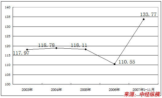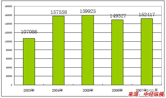 2003-2007年1至11月齿轮制造业从业人员数量状况 单位:个