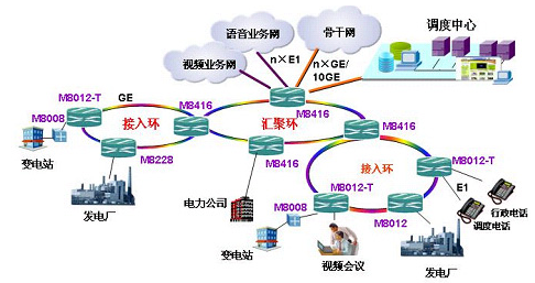 F-engineM8000系列电信级以太网多业务平台可以提供大管道的业务承载和电信级(50ms)业务保护功能,具备灵活的业务控制能力和安全性保证,可以基于用户、业务和应用来分配相应带宽和QoS等级。该平台支持数据、语音和视频等多业务的电信级高可靠承载,同时满足客户对网络业务管理和应用的差异化需求。烽火网络电力通信承载网解决方案如下图所示,主要有以下两种应用场景: