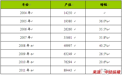 2004-2011年DLP电视墙产品产量 分析 及预测表