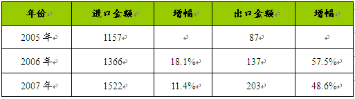 2005-2007年我国DLP电视墙进出口 分析