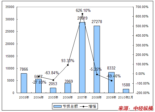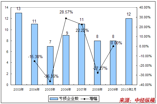 第二节 2003-2010年2月 行业 亏损企业数量状况