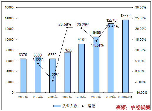 第四节 2003-2010年2月 行业 从业人员数量状况