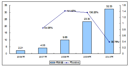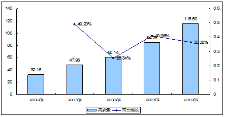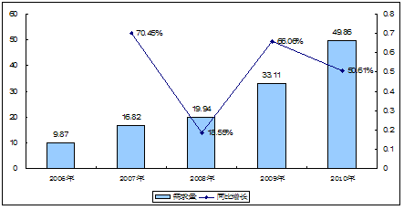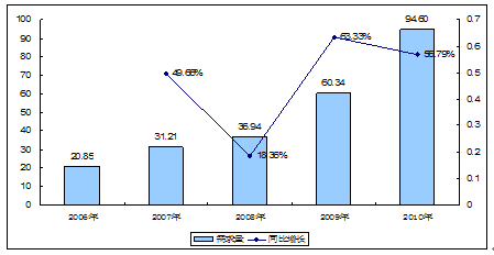 2006-2010年华南地区中国倒车雷达市场规模情况 单位:万套