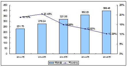 前几年华东地区需求在全国的比例都超过30%,但随着西部地区经济的快速发展,这一市场区域结构将有所改变,预计未来五年华东地区的需求在总需求的比例呈下降趋势,到2015年为28.75%,需求总量为399.48万套。